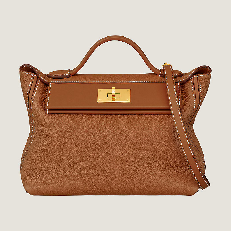Tasche aus Maurice-Jungstierleder und Swift-Kalbsleder, vergoldeter Schmuck, Innentasche mit Reißverschluss, aufgesetzte Außentasche an der Rückseite, abnehmbarer Schulterriemen