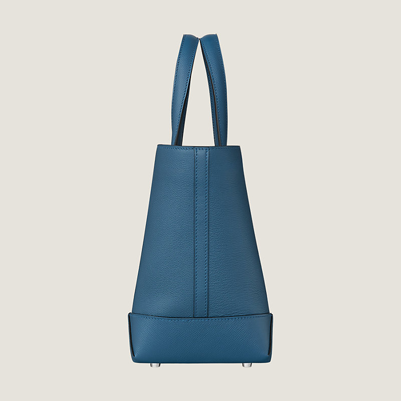 Tasche aus Evercolor-Kalbsleder mit aufgenähten Besätzen an den Ecken aus Epsom-Kalbsleder, Schmuck mit Silber- und Palladiumauflage