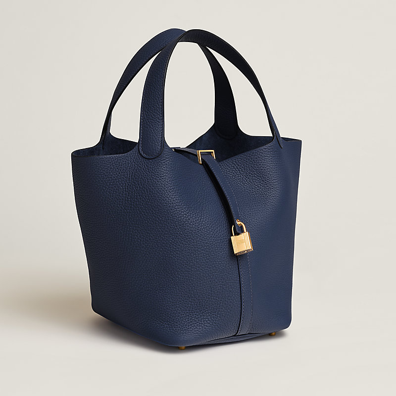 Tasche aus Clémence-Jungstierleder, Verschluss durch Lederband mit Schloss, vergoldeter Schmuck