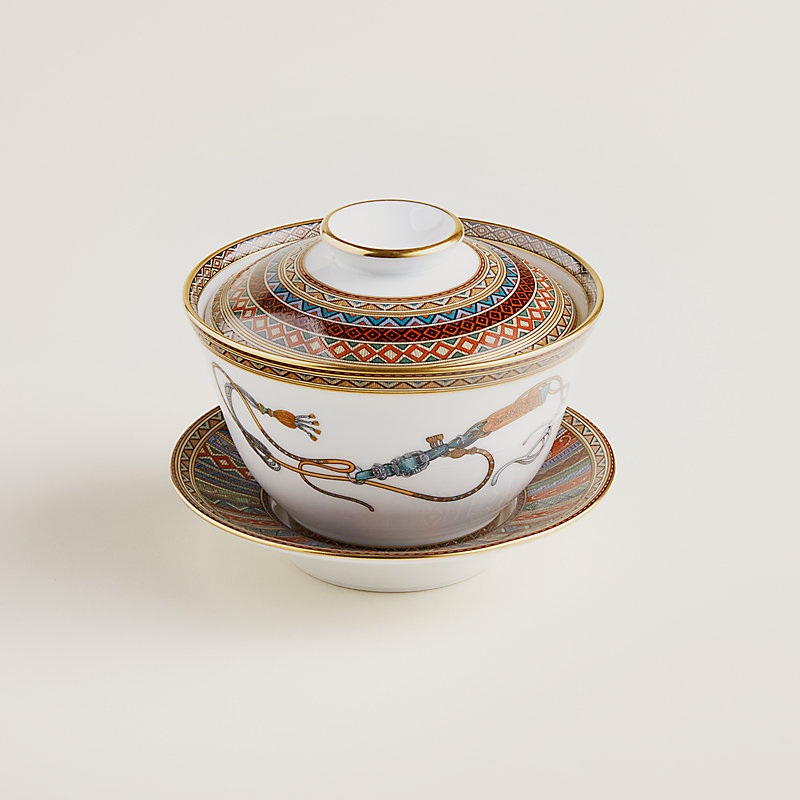 Teetasse mit Deckel und Untertasse aus Porzellan