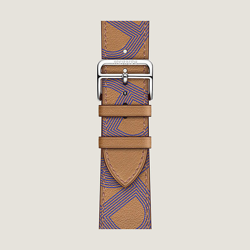 Bracelet simple tour en veau Swift coloris Biscuit/Bleu Électrique, imprimé « Circuit 24 »