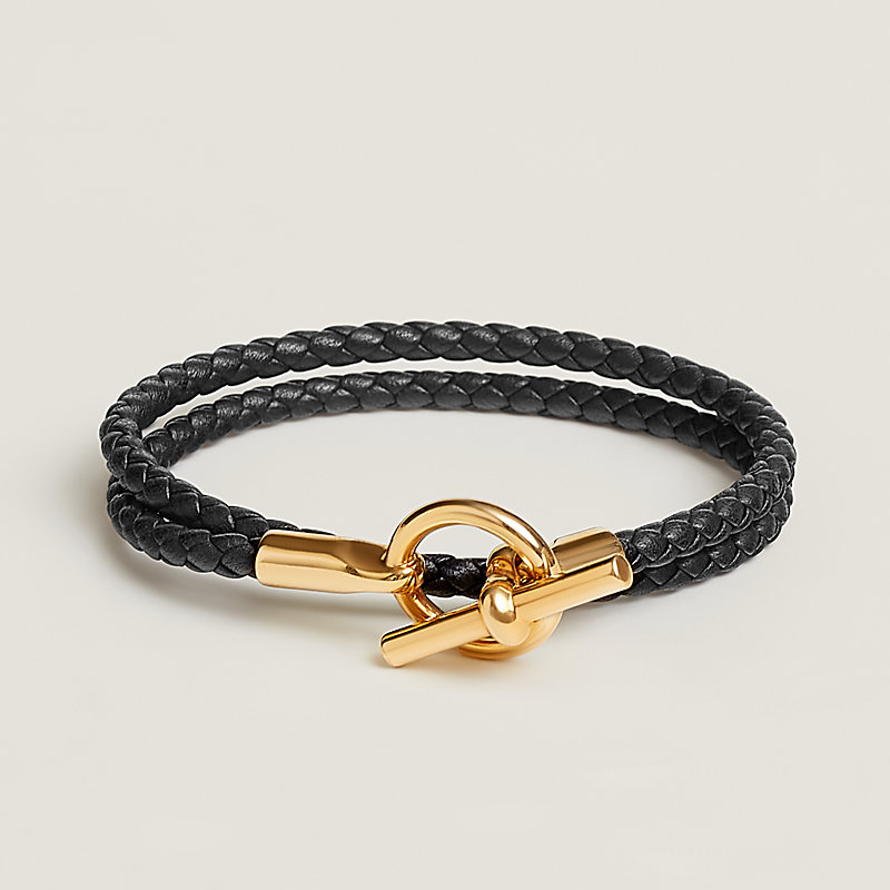 Bracelet double tour en veau Swift. Finition plaqué or