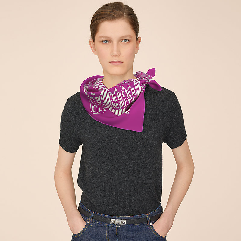 Accessoire intemporel du vestiaire Hermès, le carré 90 est un incontournable qui se porte aussi bien autour du cou, qu’en ceinture, en bandeau ou en turban.