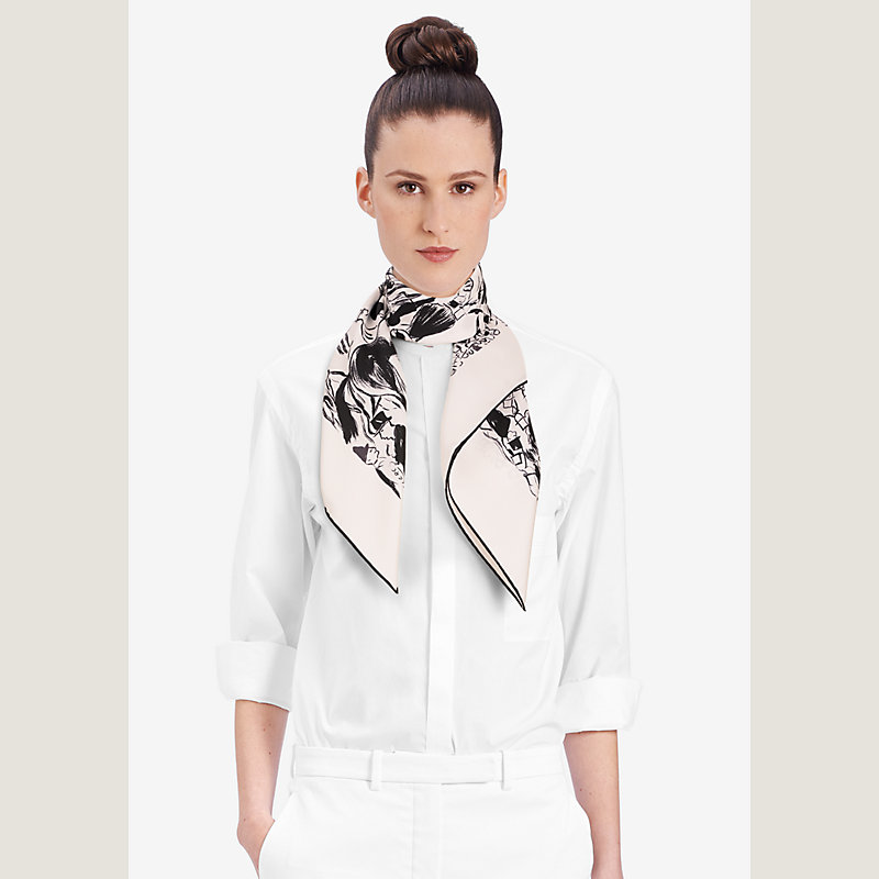 Carré en twill de soie 100 % soie, roulotté à la main.