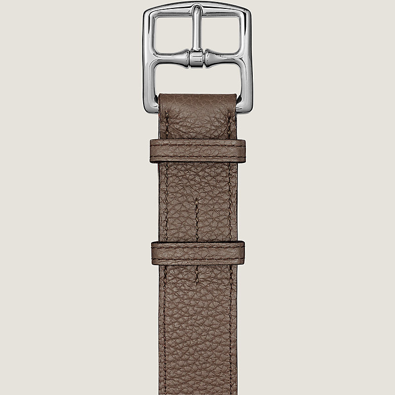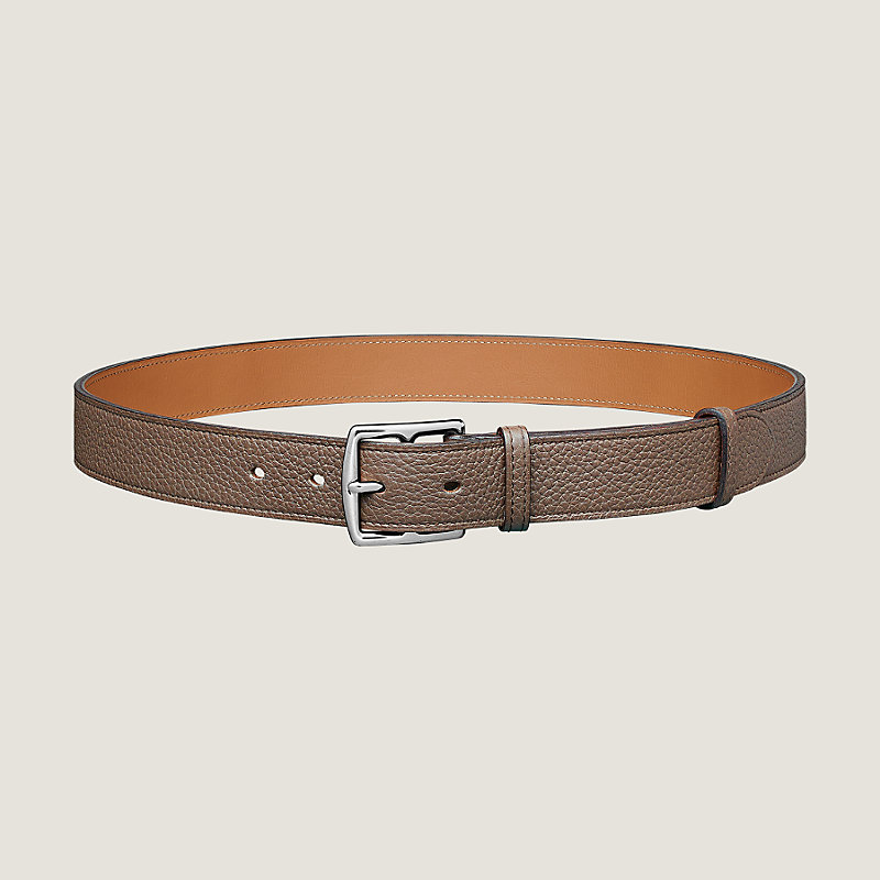 Ceinture en taurillon Clémence, boucle en métal palladié, détail H