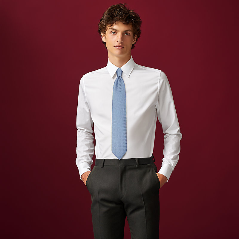 Une infinité de « H » se révèlent dans le jeu de tissage jacquard de cette cravate.