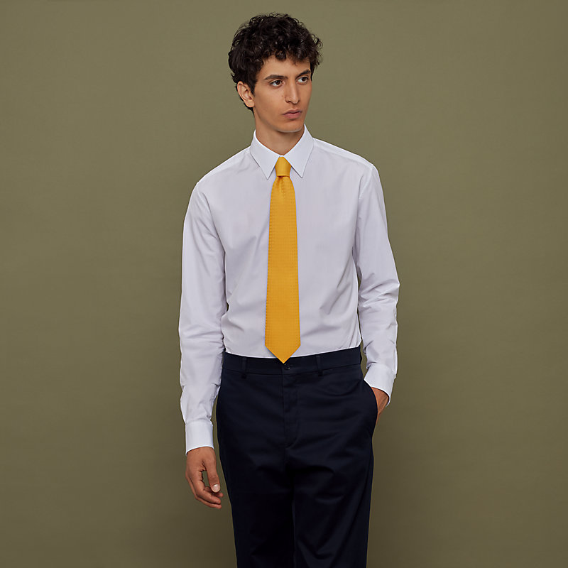 Une infinité de « H » se révèlent dans le jeu de tissage jacquard de cette cravate.