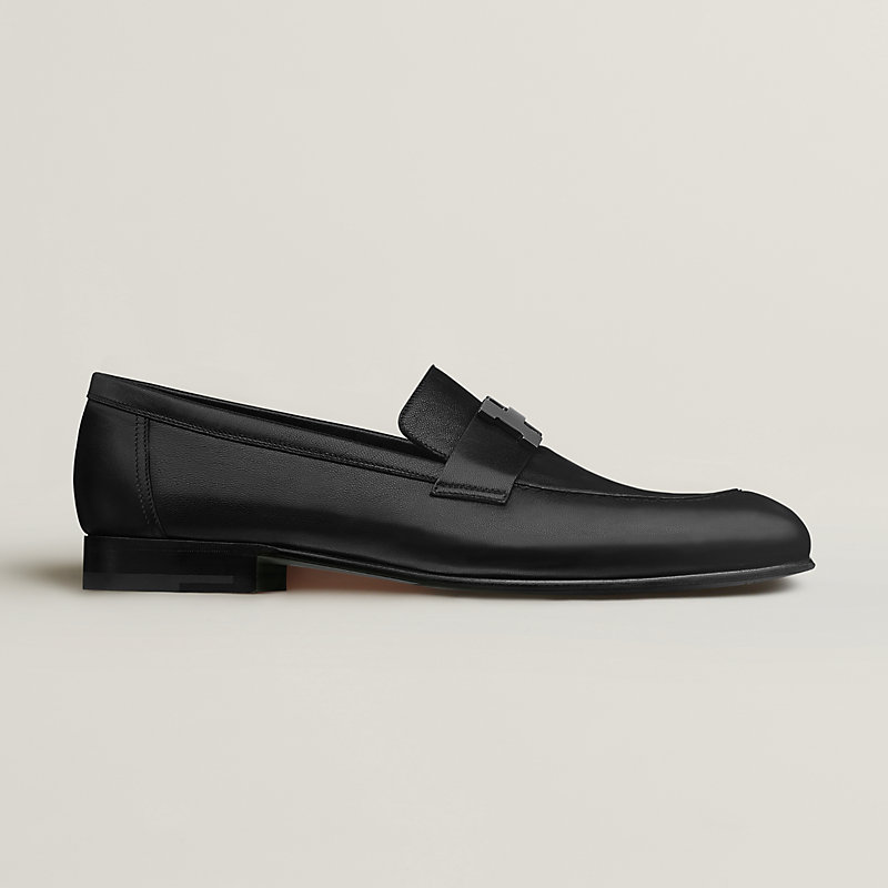 Mocassins de forme effilée en chèvre, réhaussés d'une pièce métallique palladiée