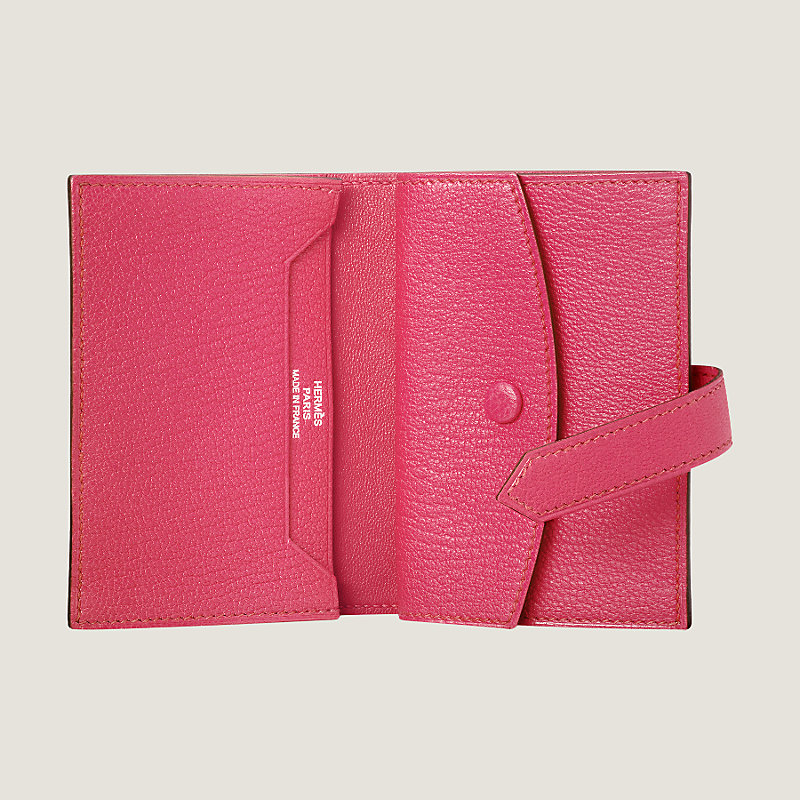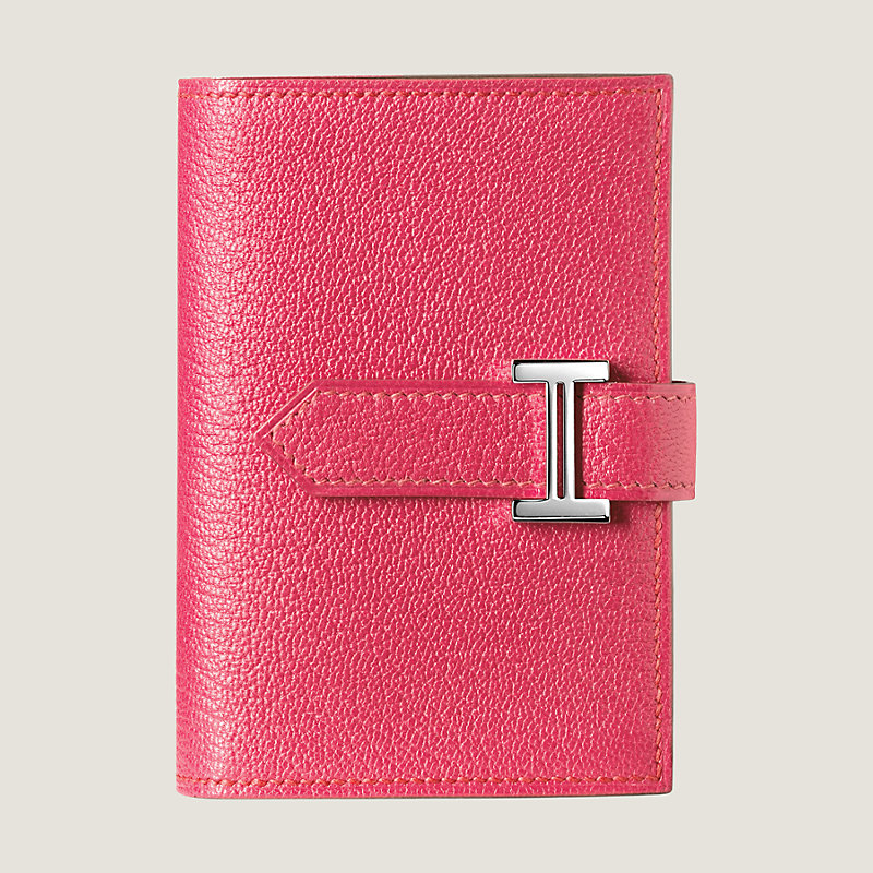 Portefeuille mini en chèvre Mysore, fermé par une patte en cuir et un fermoir « H » argenté palladié