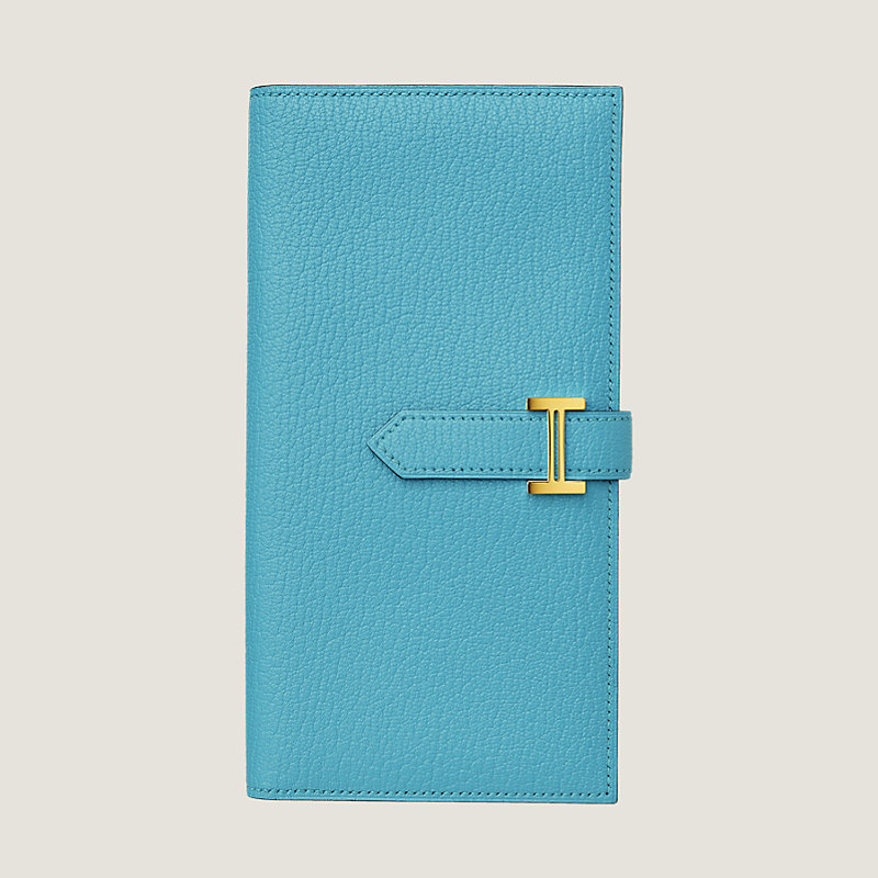 Portefeuille à soufflet en chèvre Mysore, doublé en agneau, fermé par une patte en cuir et un fermoir « H » plaqué or