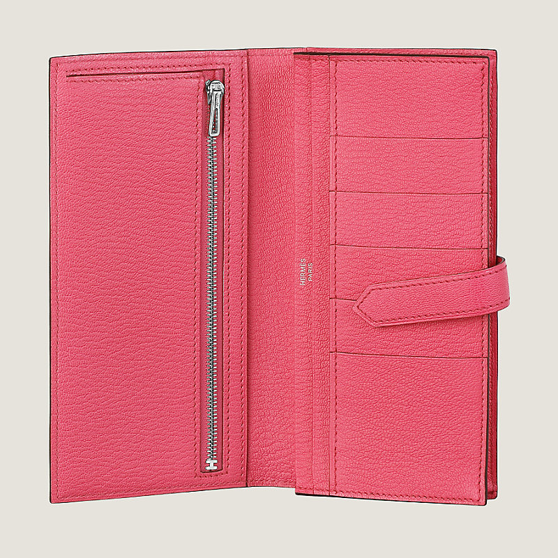 Portefeuille à soufflet en chèvre Mysore, fermé par une patte en cuir et un fermoir « H » argenté palladié