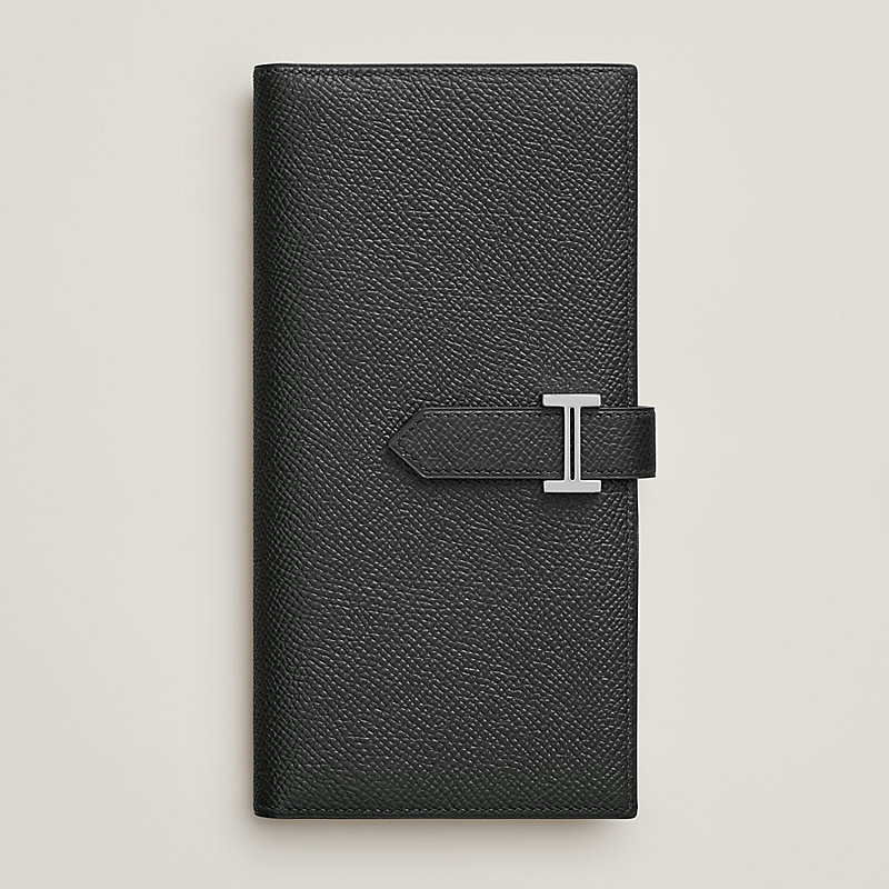 Portefeuille à soufflet en veau Epsom, fermé par une patte en cuir et un fermoir « H » argenté palladié
