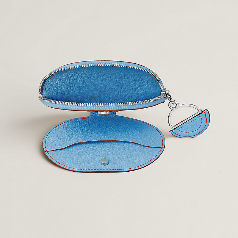 Deux compartiments : un porte-monnaie avec fermeture à glissière argentée palladiée et une poche cartes de crédit indépendante