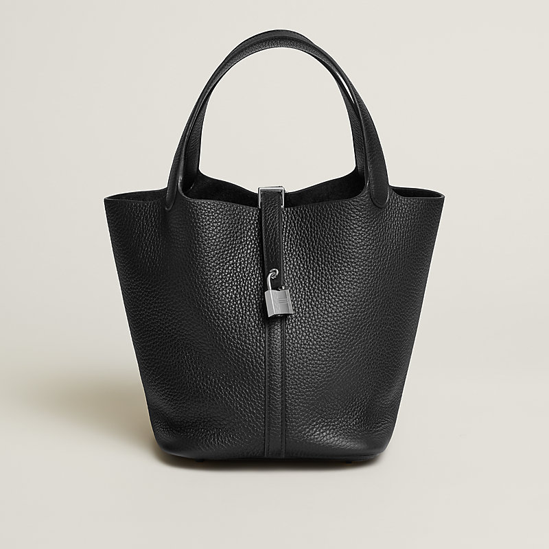 Sac en taurillon Clémence, fermé par un lien de cuir tenu par un cadenas, bijouterie argentée palladiée