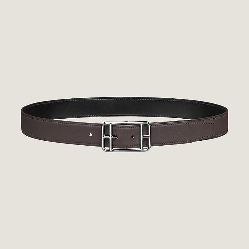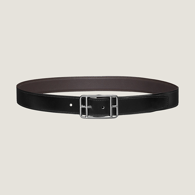 Hermes belt in Box calfskin/Taurillon Cristobal leather, palladium plated buckle