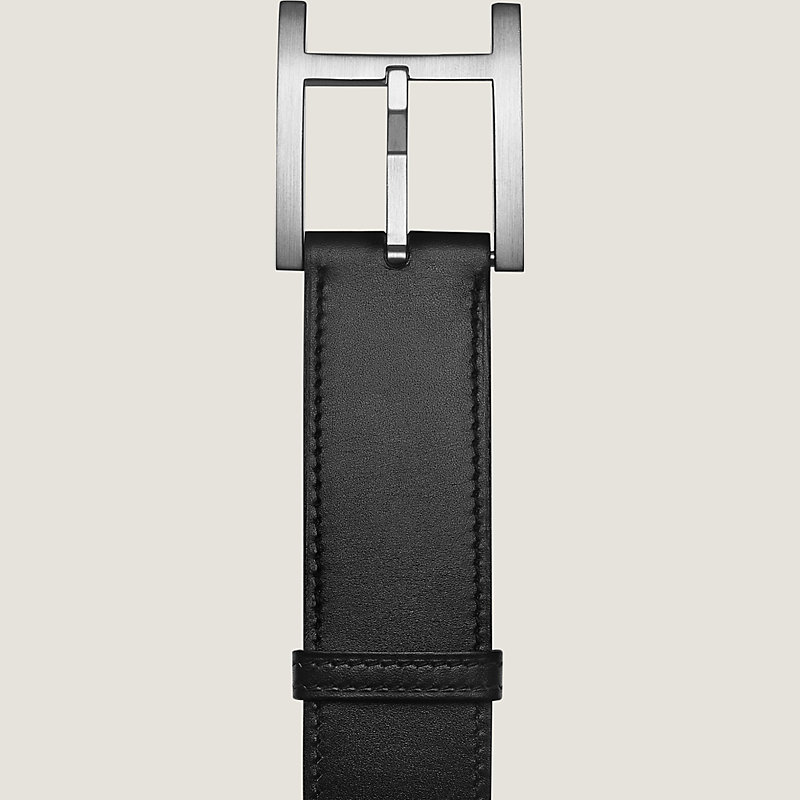Hermes leather belt in Box calfskin, buckle in brushed palladium plated metal