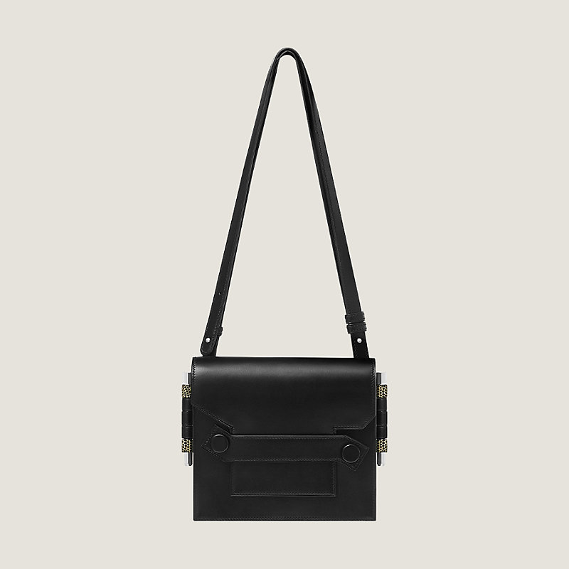 Diese Tasche besteht aus zwei Partien, die sich zusammen oder separat tragen lassen und durch hübsche Metallstäbe verbunden sind. Dieses Design spielt mit Materialien und Farben und verspricht zwei Taschen in einer.