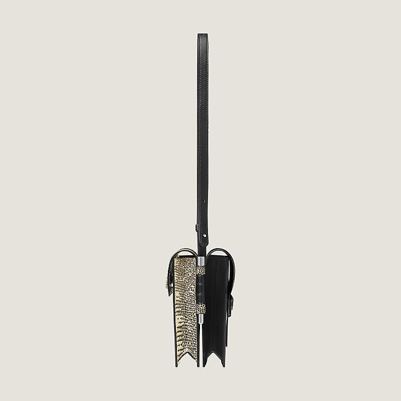 Tasche aus Monsieur-Kalbsleder und glattem Natura-Eidechsenleder, Schmuck mit Silber- und Palladiumauflage, verstellbarer und abnehmbarer Schulterriemen