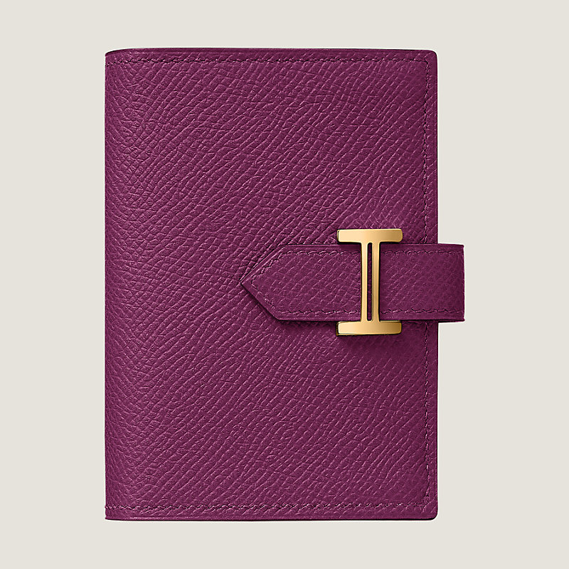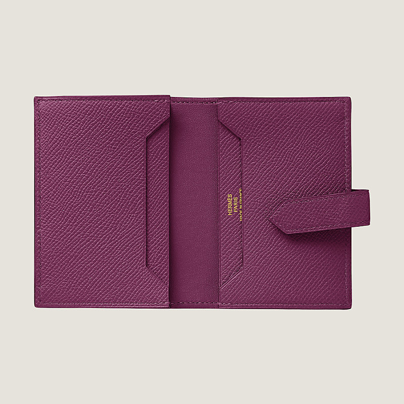 Card holder in Epsom calfskin with with card pocket, pocket and gold plated 'H' tab closure