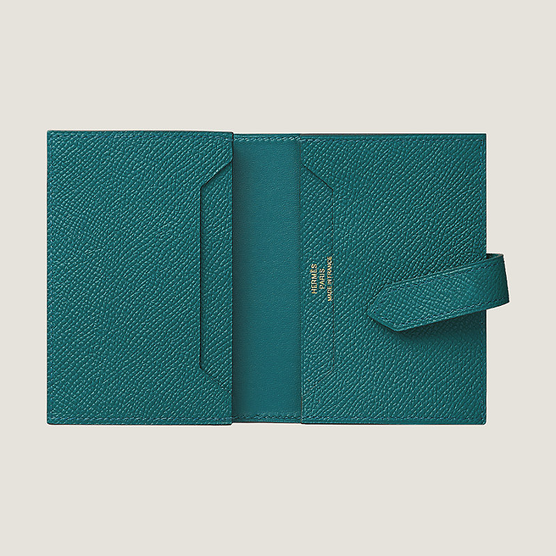 Card holder in Epsom calfskin with with card pocket, pocket and gold plated 'H' tab closure