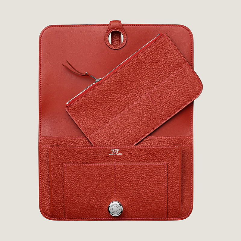 Cartera combinada en ternera Togo, forro en cordero, cierre "Clou de Selle" plateado paladiado