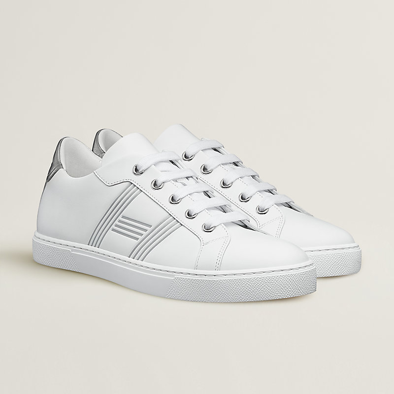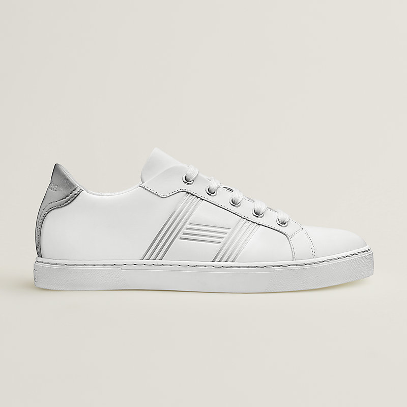 Deportivas en ternera y napa metalizada depuradas y gráficas. Juego de rayas en relieve contrastadas.