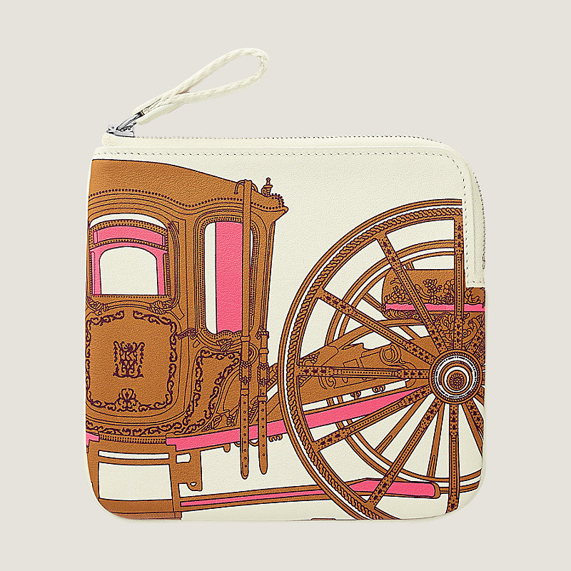 Estuche en ternera Swift estampada "Balade en Berline", tirador de cincha en galón liso, cierre de cremallera plateada paladiada