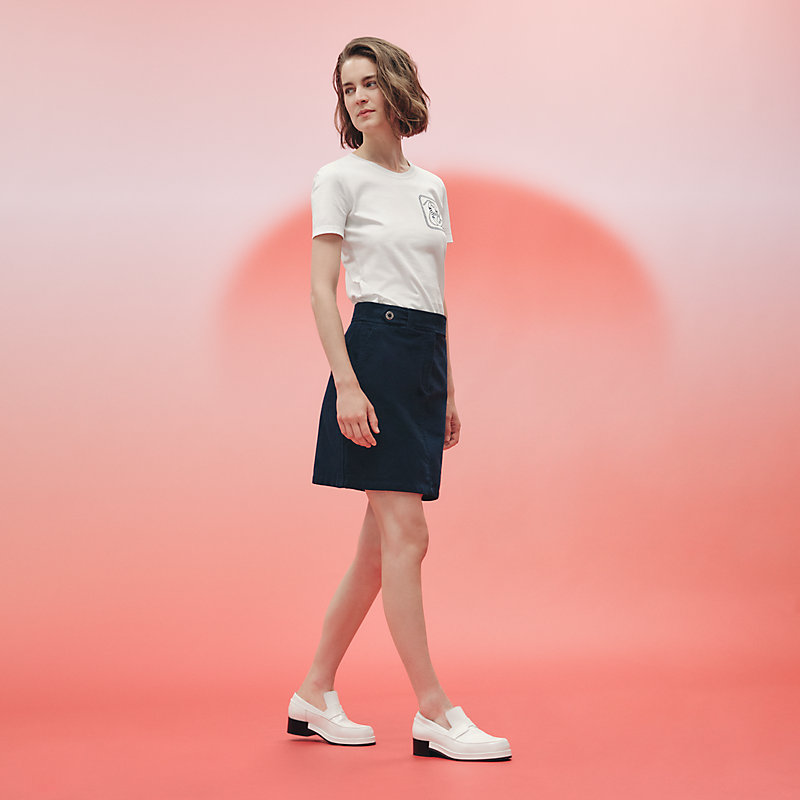 Hermès Homme reinterpreta el chaquetón tradicional a través de sofisticados detalles: un cuello abotonado, un gran bolsillo en el pecho y una pieza de refuerzo en los laterales. El conjunto se ve sublimado por un material excepcional: la popelina de algodón compacta. El volumen holgado dibuja una silueta desenfadada.