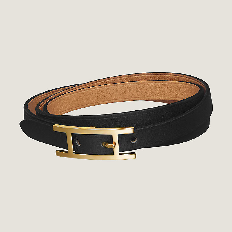 Triple tour bracelet in Chamonix calfskin with gold plated adjustable closure