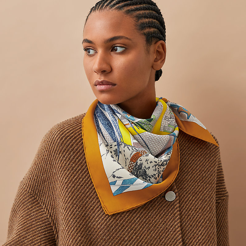 Preserve the beauty of your scarf by avoiding contact with rain, water and other chemicals. Store it flat and untied, and entrust it to a professional dry cleaner when needed.