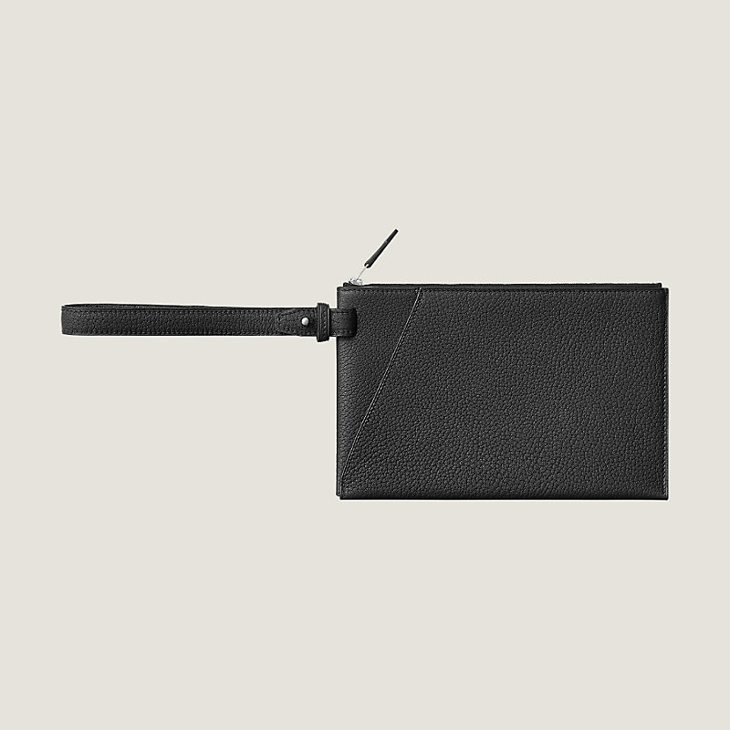 Pochette en veau Négonda, bijouterie argentée palladiée, dragonne amovible