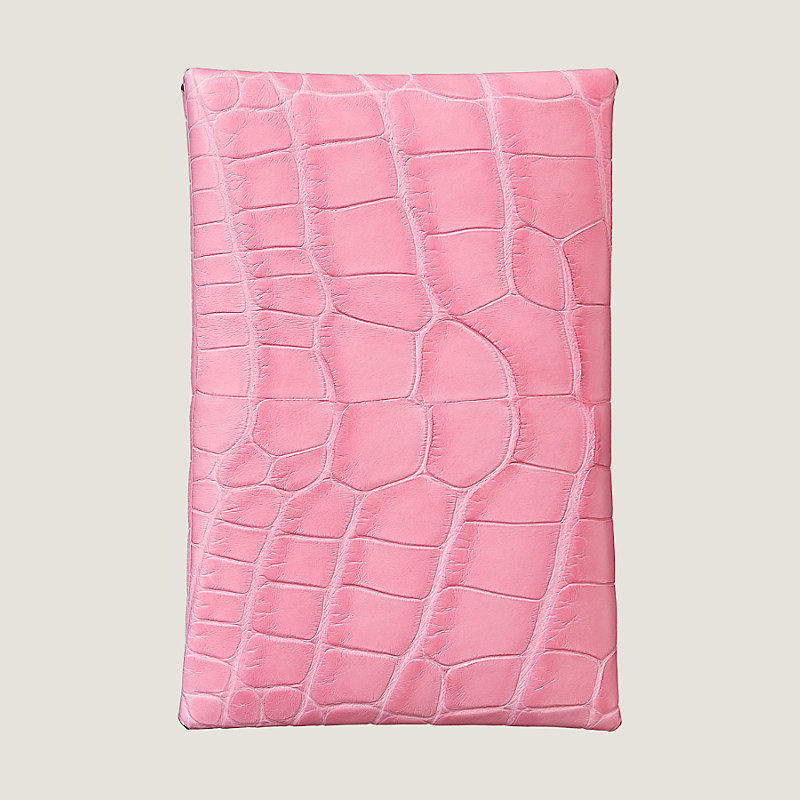 Porte-cartes en alligator Mississippiensis mat, fermé par un bouton-pression « clou de selle » argenté palladié