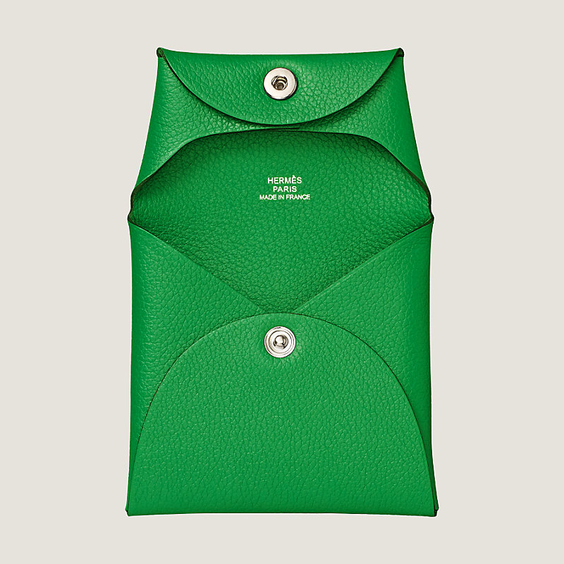 Porte-monnaie plié en veau Evercolor, fermé par un bouton-pression argenté palladié