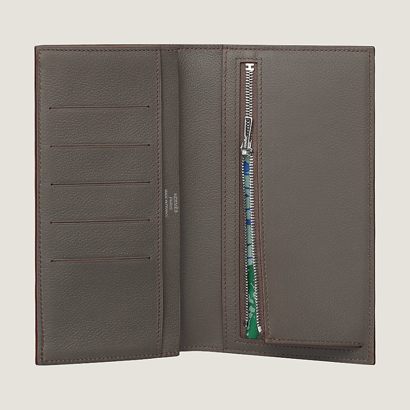 Portefeuille long combiné en veau Evercolor, doublé en twill de soie imprimé « Cheval Surprise »