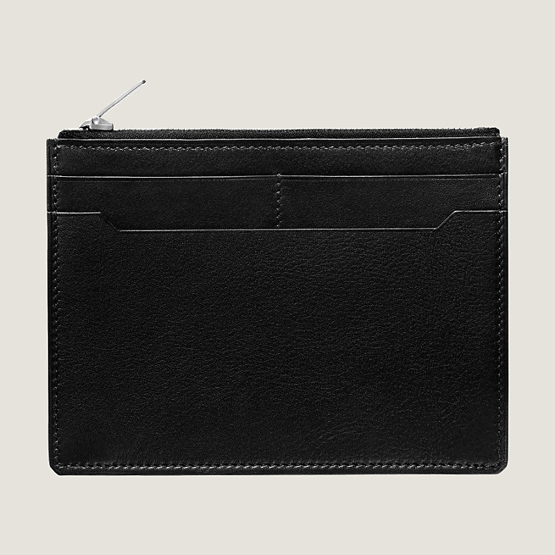 Une poche centrale avec fermeture à glissière, deux poches cartes de crédit et une poche plaquée exterieurs