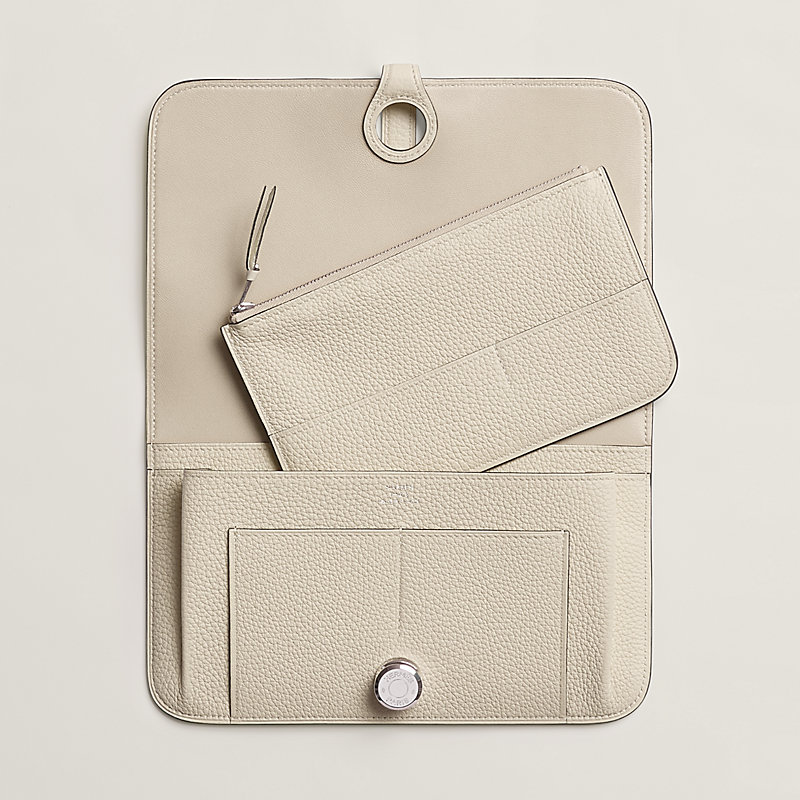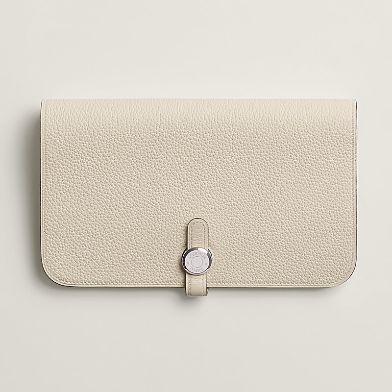 Portefeuille combiné en veau Togo, doublé en agneau, fermoir « clou de selle » argenté palladié
