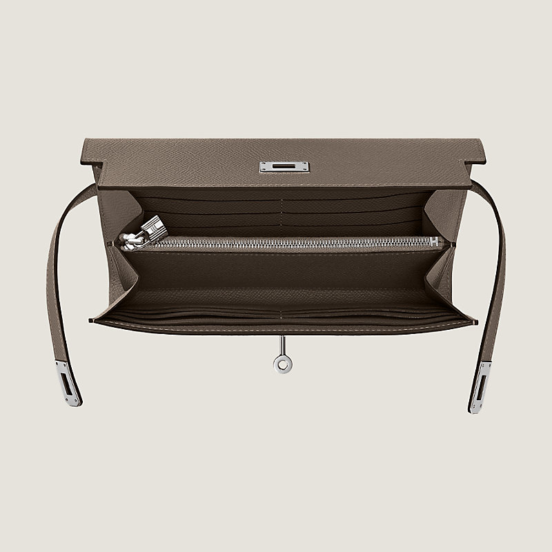 Portefeuille long en veau Epsom, fermé par des sanglons et un fermoir argenté palladié