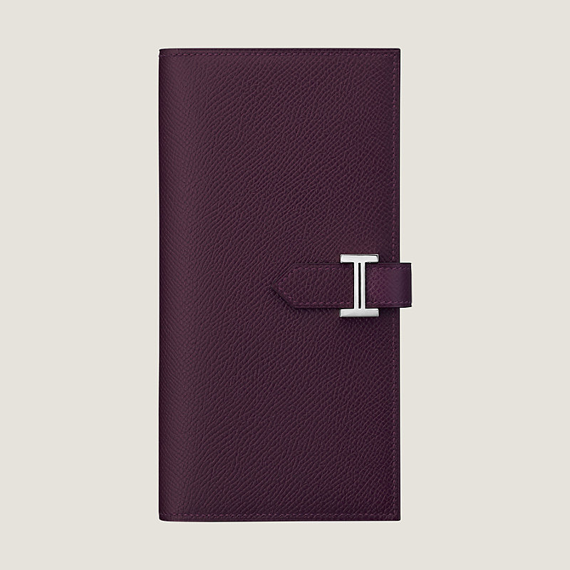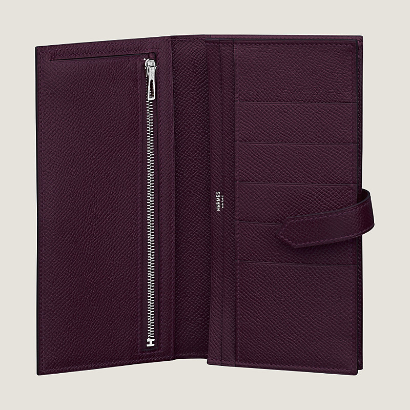 Wallet with gusset in Epsom calfskin with 5 credit card slots, 2 pockets, zipped change purse and palladium plated 'H' tab closure