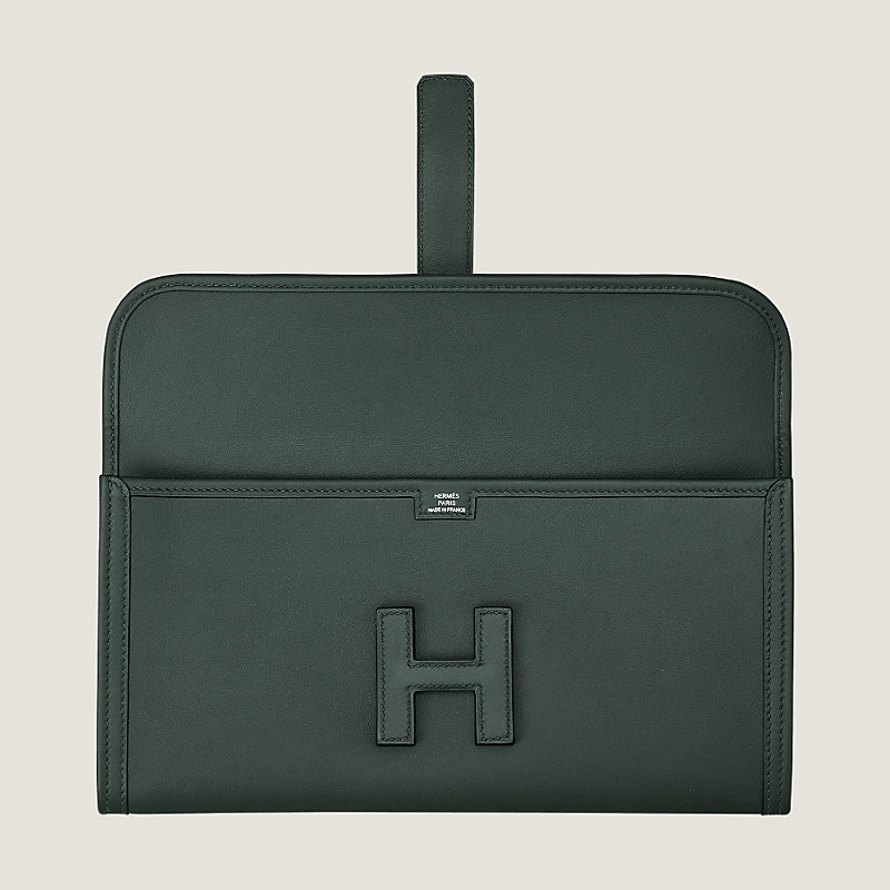 Clutch in Swift calfskin with H tab closure
