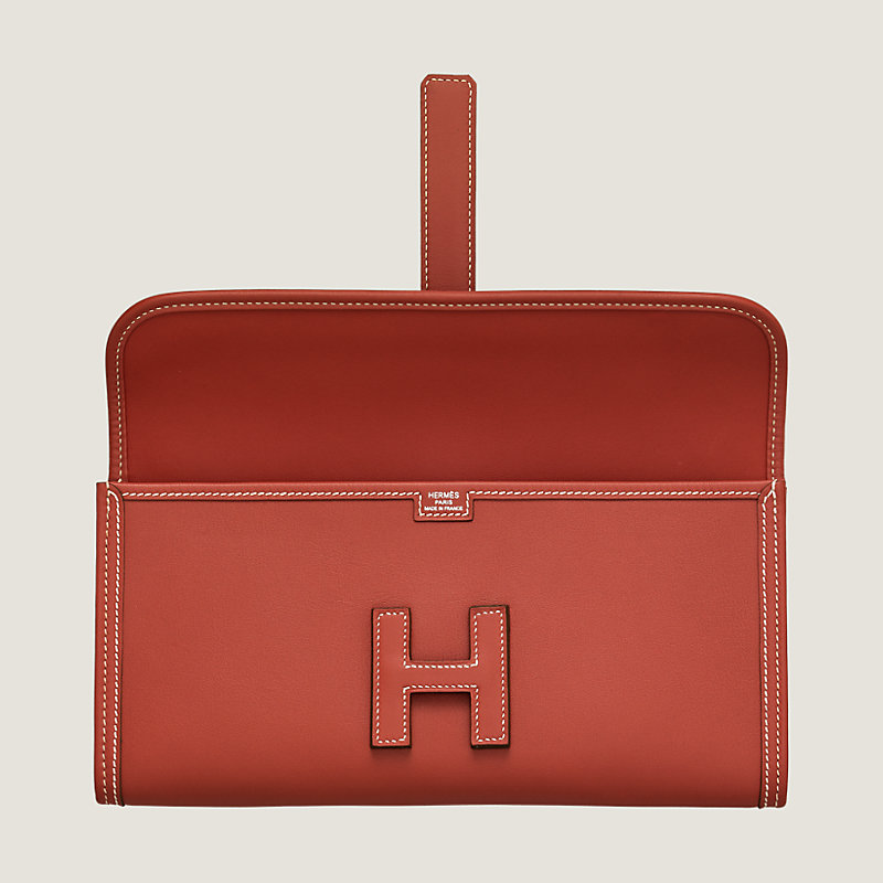 Clutch in Swift calfskin with H tab closure