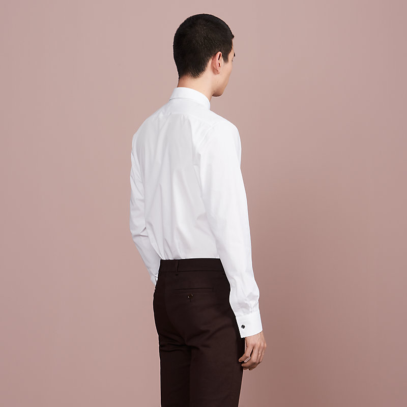 Fitted shirt in plain cotton poplin with flexible collar, pure mother-of-pearl buttons and plain cuffs with palladium plated "Clou de Selle" buttons (100% cotton)