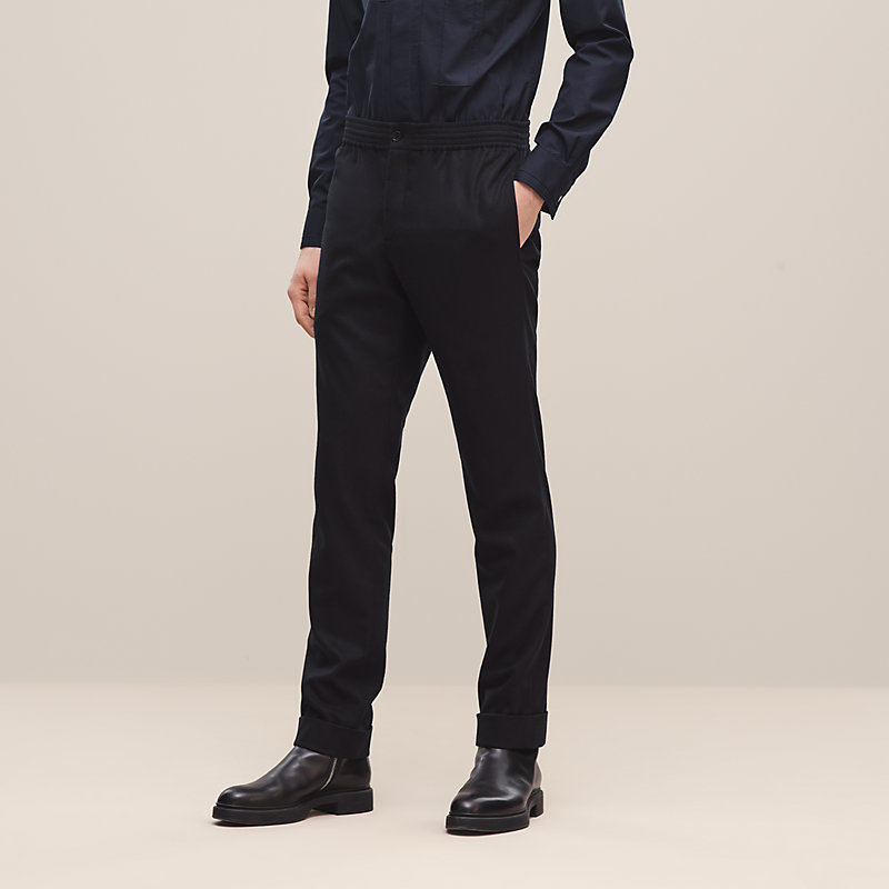 Pantalone Saint Germain in flanella di lana, taglio slim fit, cintura elasticizzata (100% lana)