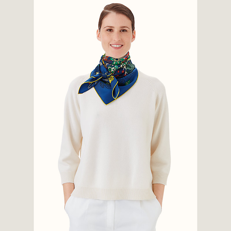 時代を超越して愛されるエルメスのカレ。首に巻いたり、ベルトにしてみたり、ヘアバンドやターバンにしてヘアアレンジにも活用できる永遠の定番です。