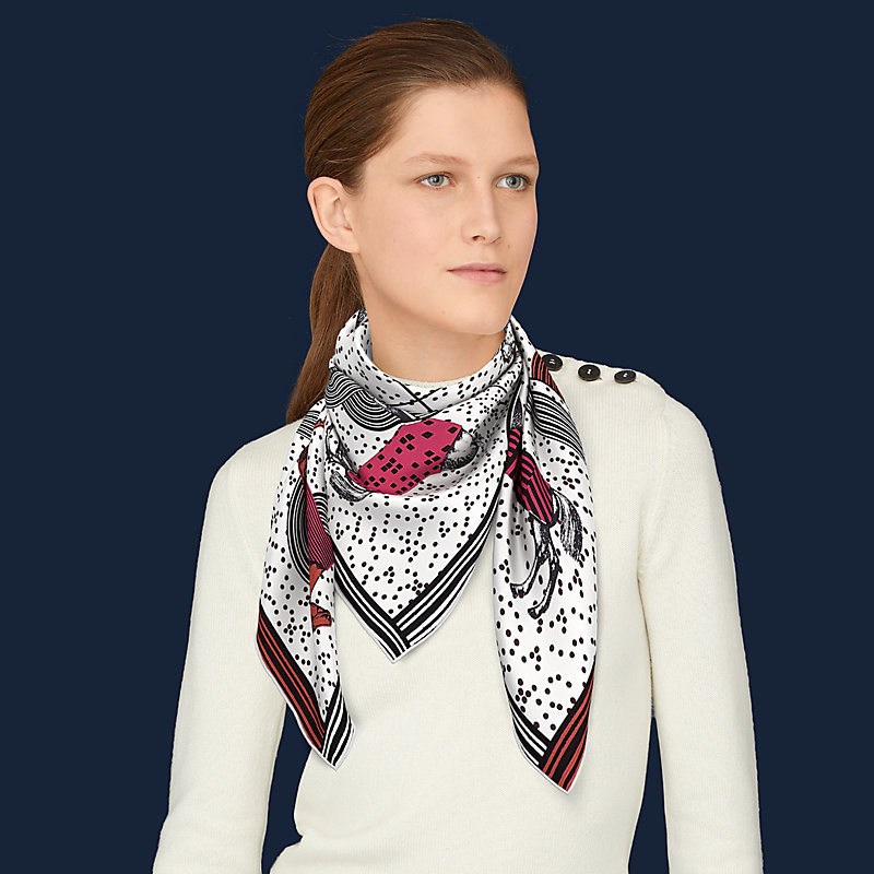 時代を超えて愛されるエルメスのカレ。首に巻いたり、ベルトにしてみたり、ヘアバンドやターバンにしてヘアアレンジにも活用できる永遠の定番です。