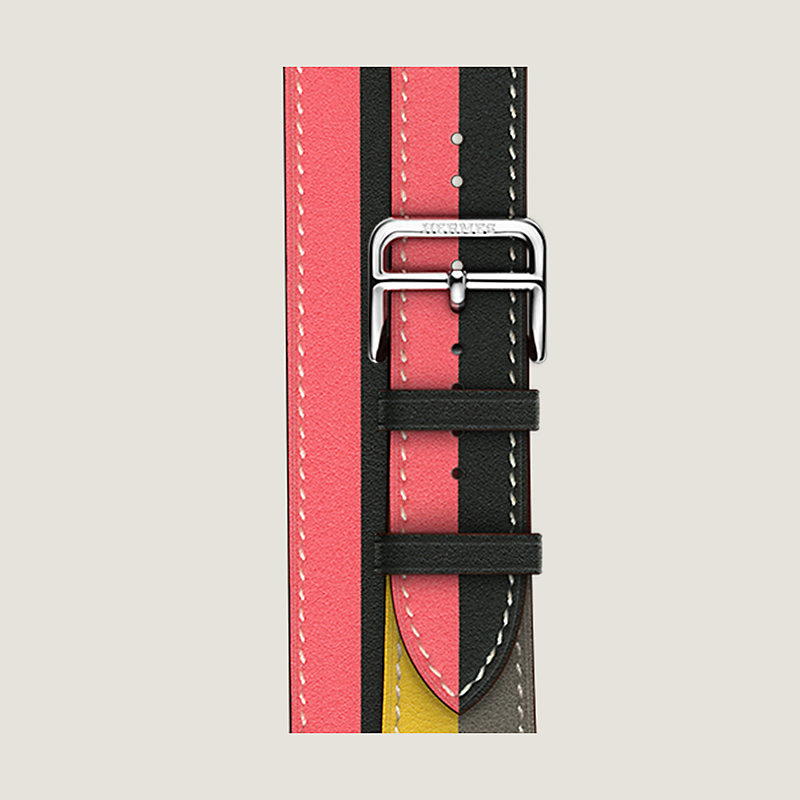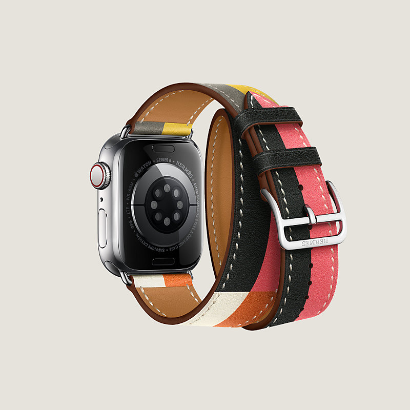 기수의 저지에서 영감을 받은 기하학적이고 다채로운 패턴이 애플 워치 에르메스에 유쾌하고 대담한 매력을 선사합니다.