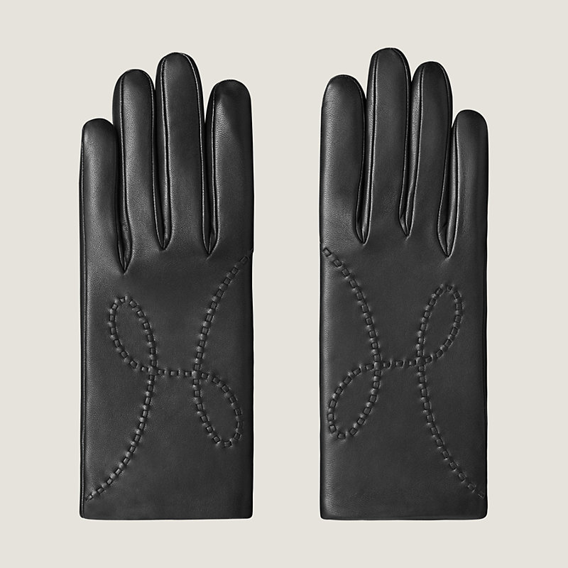這款Hermes手套採用磨砂小羊皮製成,飾有精美H字籤和真絲襯裡