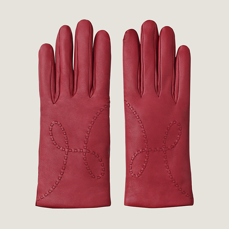這款Hermes手套採用磨砂小羊皮製成,飾有精美H字籤和真絲襯裡