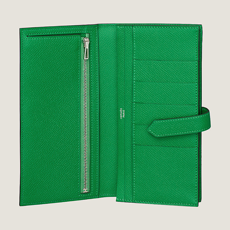 Epsom小牛皮钱包,带有接裆式口袋,配有5个卡槽,2个口袋,拉链零钱包及镀钯“H”锁扣。