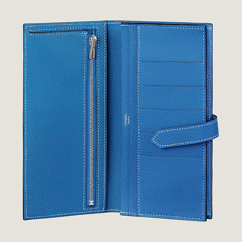 Epsom小牛皮钱包,带有接裆式口袋,配有5个卡槽,2个口袋,拉链零钱包及镀钯“H”锁扣。