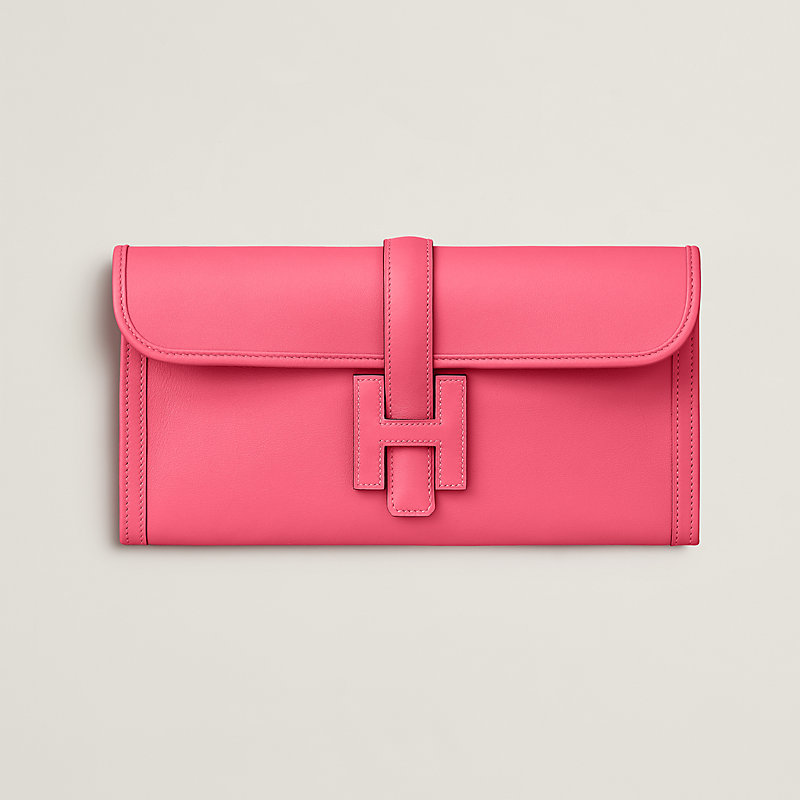 H 탭 잠금 디테일이 특징인 스위프트 카프스킨 소재의 클러치
